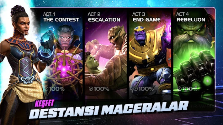 Klasik Marvel hikaye anlatımının sürükleyici atmosferine dal. Kang ve Thanos gibi evreni tehdit eden kudretli kötüleri durdurmak için tehlikeli maceralara atıl ve kozmik bir gizemin peşinden git. Yenilmezler Kulesi'nden Wakanda'ya, Asgard'dan Kyln'e kadar Marvel Evreni'nin en bilinen köşelerinde zorlu dövüşlere katıl. Mobil cihazlar için özel olarak tasarlanmış dinamik kontrol sistemiyle aksiyonun tam ortasına atıl ve her anı dolu dolu yaşa, galaksiyi yok olmaktan kurtar.